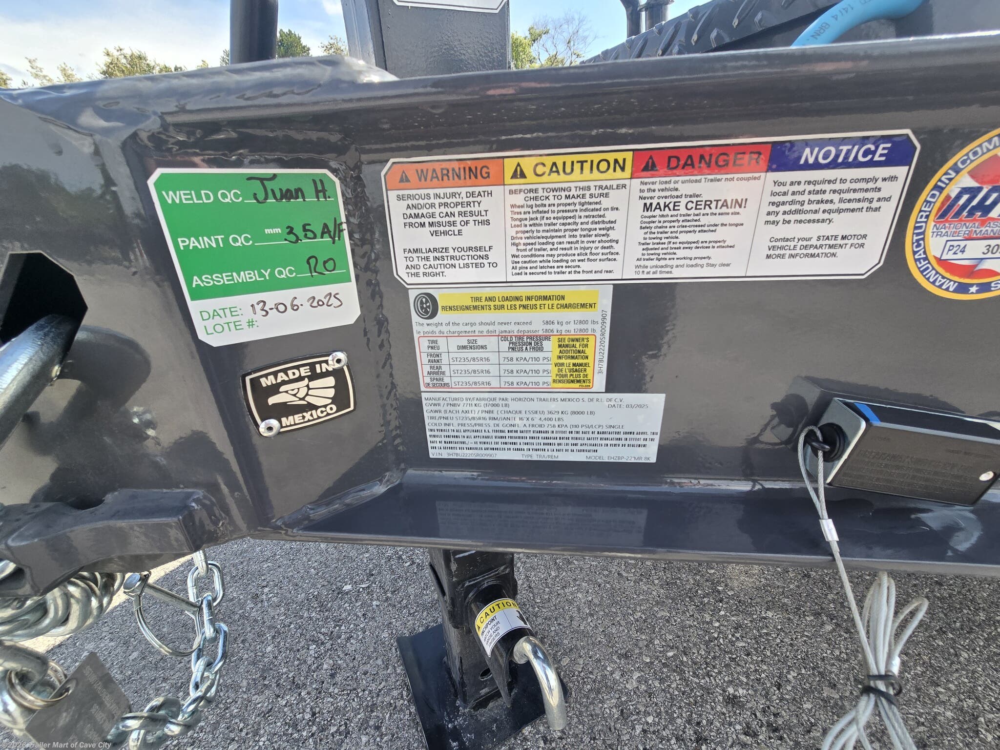 TRAILER WARRANTY: Three (3) Year Frame/One (1) Year Parts Warranty