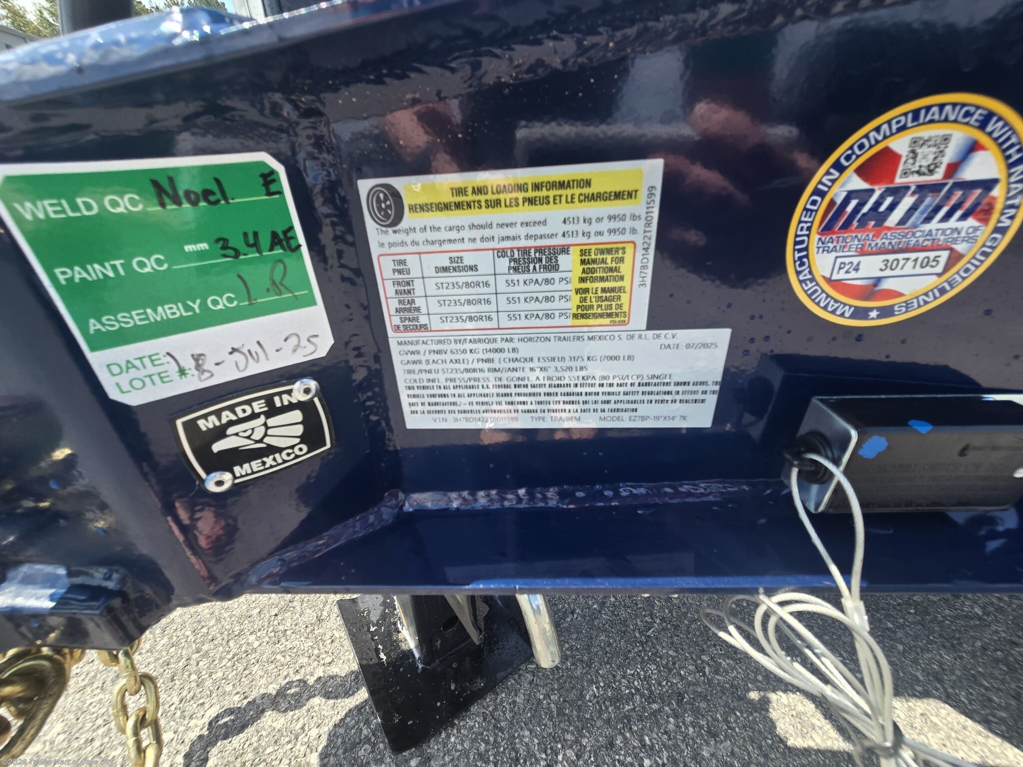 TRAILER WARRANTY: THREE (3) YEAR FRAME/ONE (1) YEAR PARTS WARRANTY