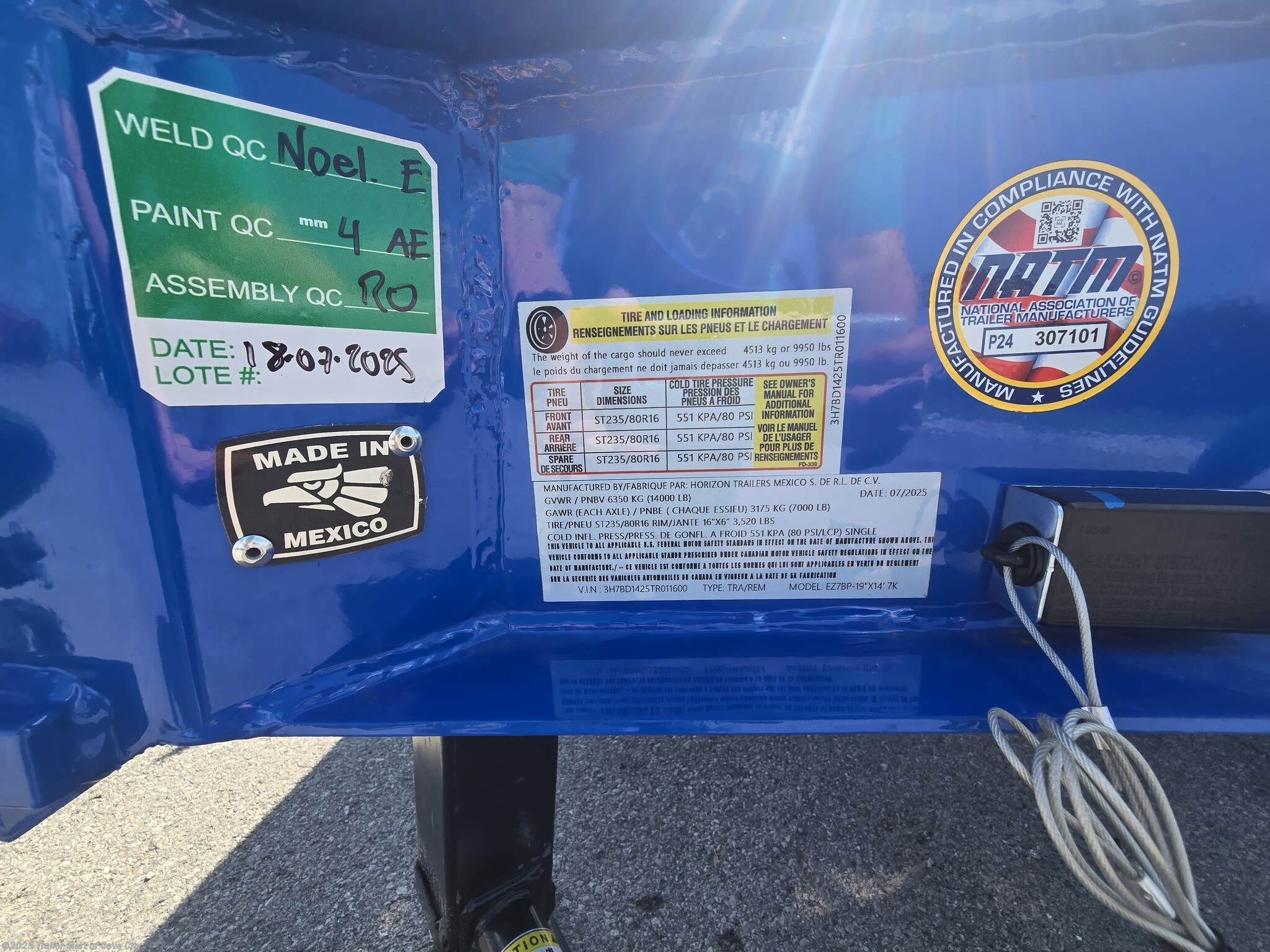 TRAILER WARRANTY: THREE (3) YEAR FRAME/ONE (1) YEAR PARTS WARRANTY